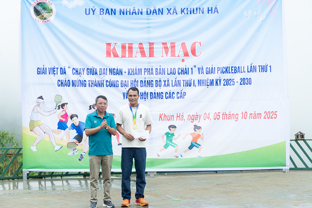 Kết thúc giải chạy, Ban Tổ chức đã trao 2 giải Nhất, 2 giải Nhì, 2 giải Ba và 10 giải Khuyến khích cho các vận động viên nam và nữ xuất sắc. Điều đọng lại sau đường đua không chỉ là niềm vui, sự phấn khởi của các vận động viên, mà còn là khí thế mới, niềm tin mới lan tỏa trong toàn xã sau thành công của Đại hội Đảng bộ xã Khun Há lần thứ I, nhiệm kỳ 2025–2030.
